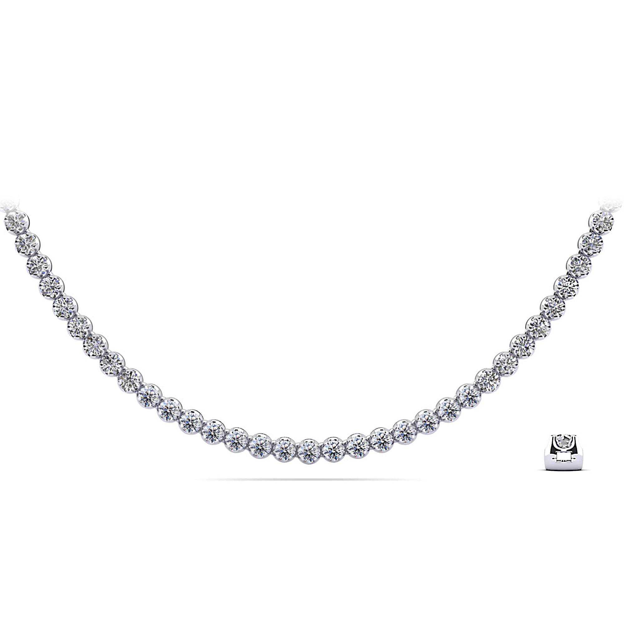 Update your personal collection with our 14K gold tennis necklace, weighing 16.50 grams. It showcases a total carat weight of 3.06 ct of lab created FG color and VS clarity, set in a prong setting. These 153 round diamonds, each measuring 1.6mm, are cut to perfection. The piece is designed with a length of 16" and a consistent width and height of 2.00mm. A true blend of luxury and sophistication.