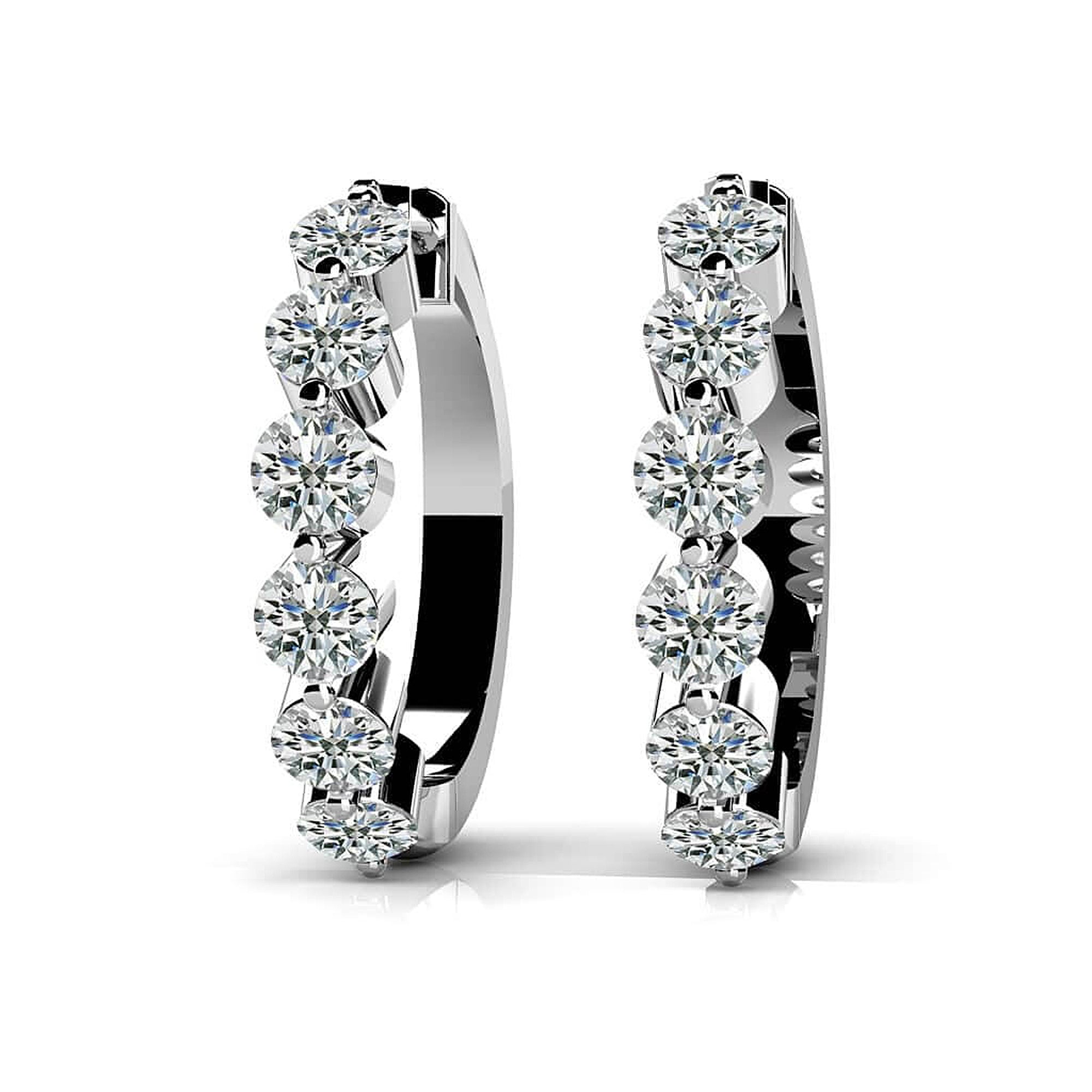 The Huggie earrings are made from 14K Gold and have an approximate metal weight of 1.73 grams. The diamonds have an approximate carat weight of 0.46 ct. with a color grade of FG and clarity of VS. In total, there are 14 stones, each set in a prong setting, round in shape, with a carat weight of 0.033 ct. each and a size of 2mm. The studs overall dimensions are 14.95mm in width and 14.05mm in height.