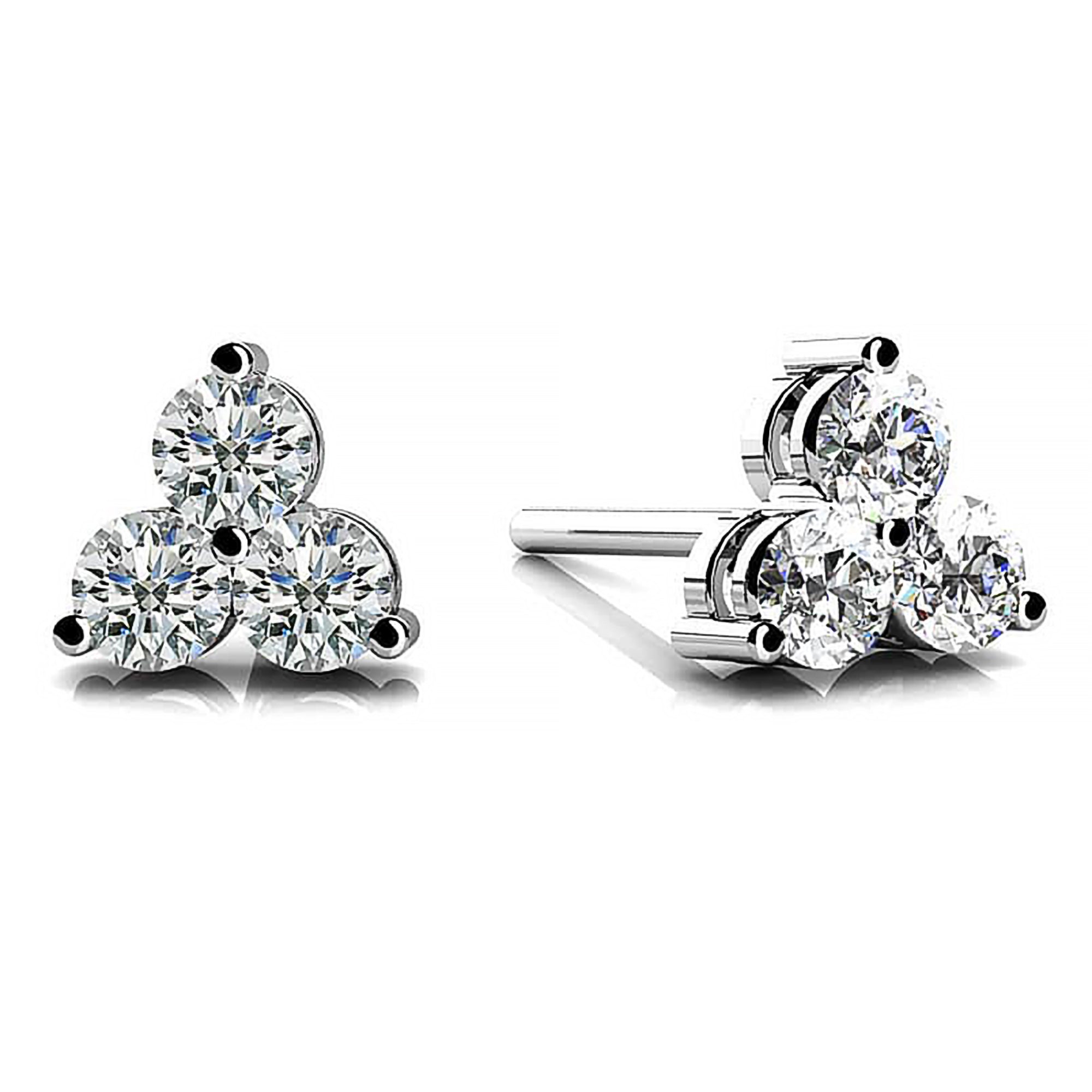Priced at $450, the Trinity Studs feature stunning diamonds with a total carat weight of 0.20 ct, further accentuated by their FG color and VS clarity. Cut between good to very good, bringing out the best of their beauty. Adorned with 3 diamonds per earring (weighing 0.033 ct each), their prong setting serves to enhance radiance. The size of each stone is 2mm, making for a symmetrical and balanced design. These studs are not just about opulence but also precision and symmetry, creating an ageless allure to them.
